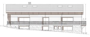 L’architecture du chalet s’agence sur quatre niveaux (sous-sol, rez-de-chaussée, premier étage et combles), afin de s’adapter au mieux à la pente naturelle du terrain.