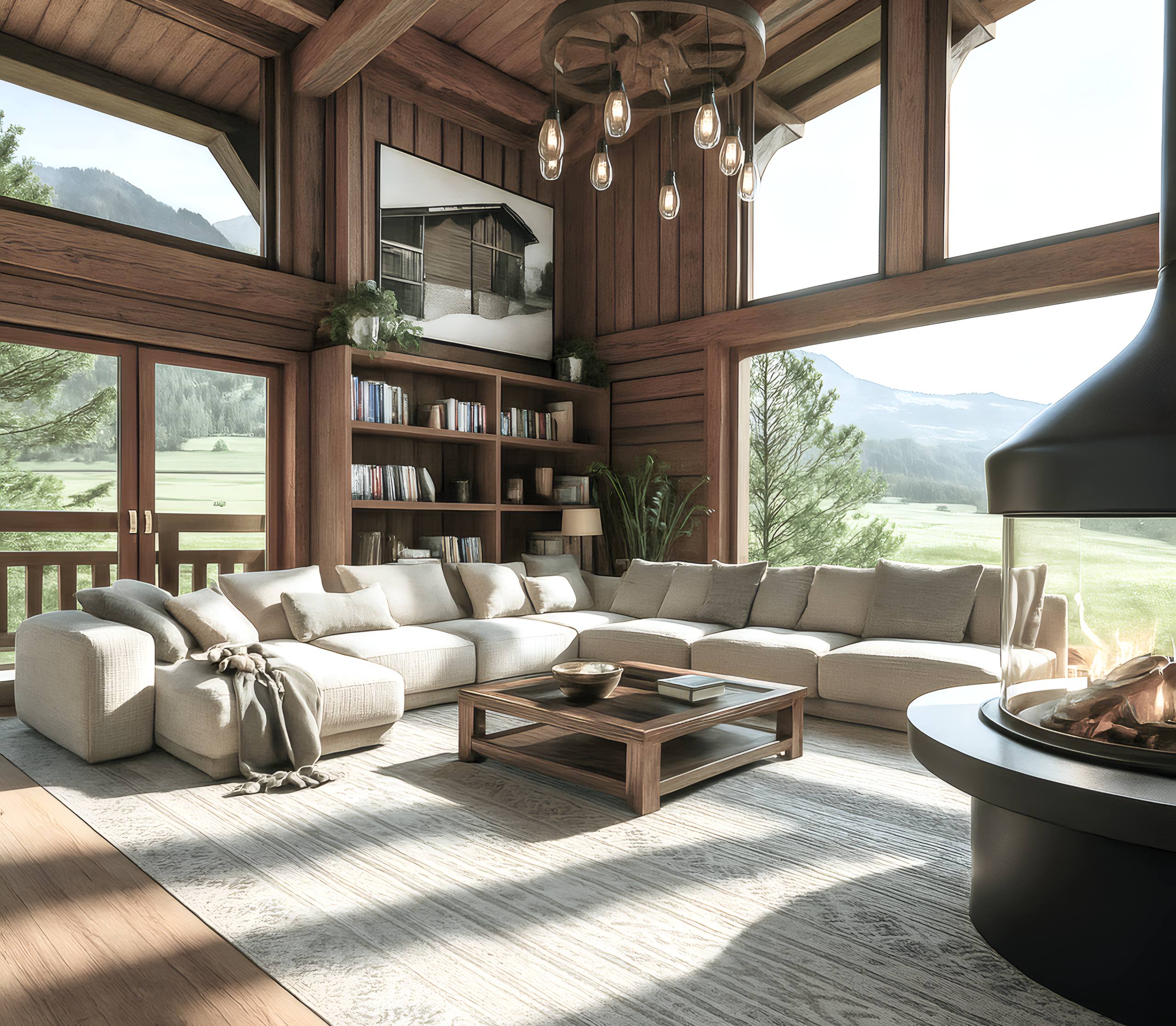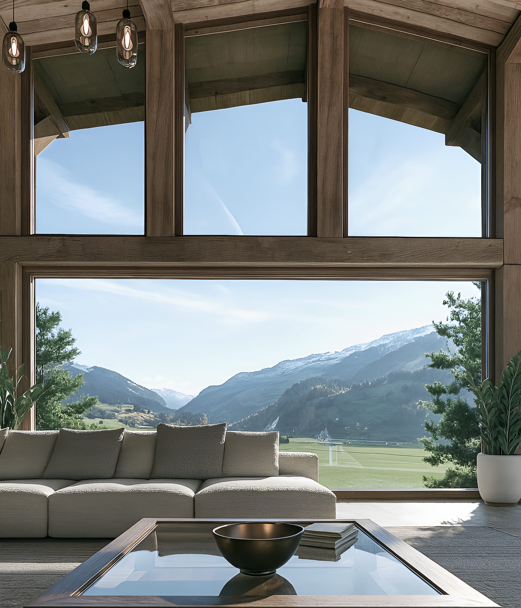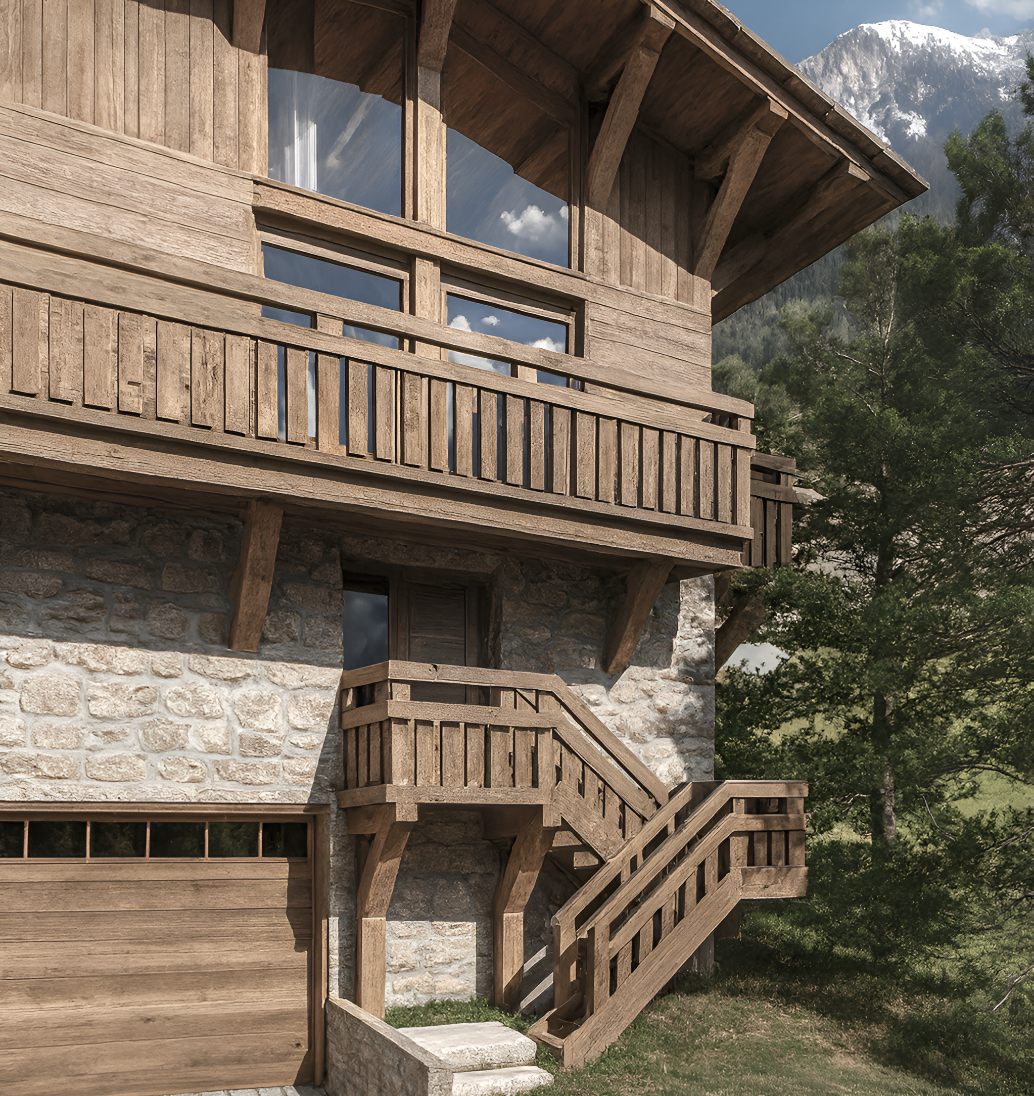 Le chalet reprend les acquis de l’architecture traditionnelle du massif alpin : il valorise la pierre de taille naturelle et le bois massif. Mais il se caractérise aussi par des éléments résolument contemporains qui accentuent à la fois son design et sa qualité énergétique :