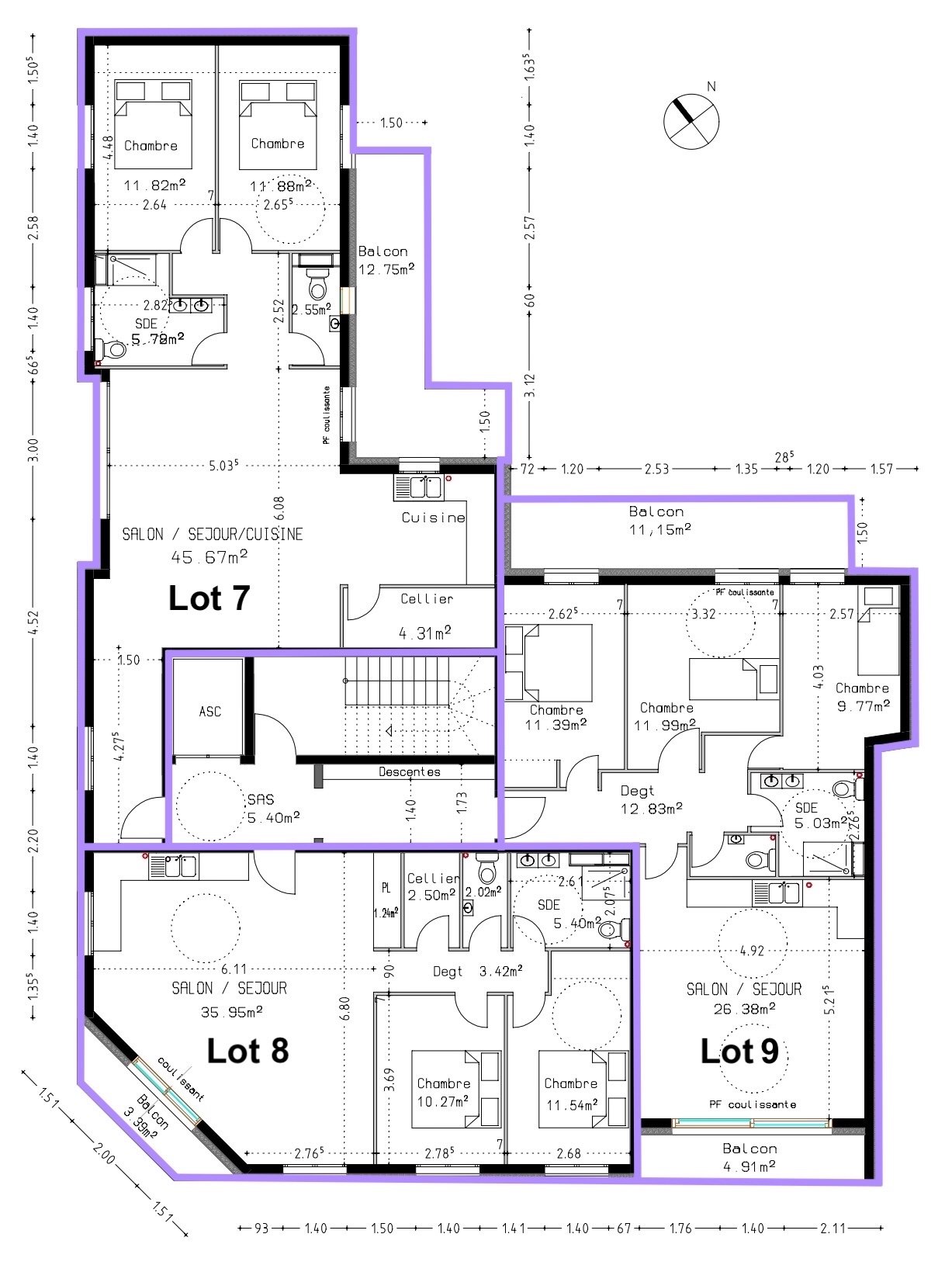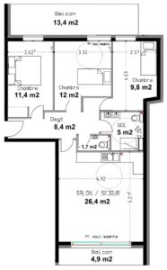 Surfaces 4 pièces (lots 3, 6, 9)