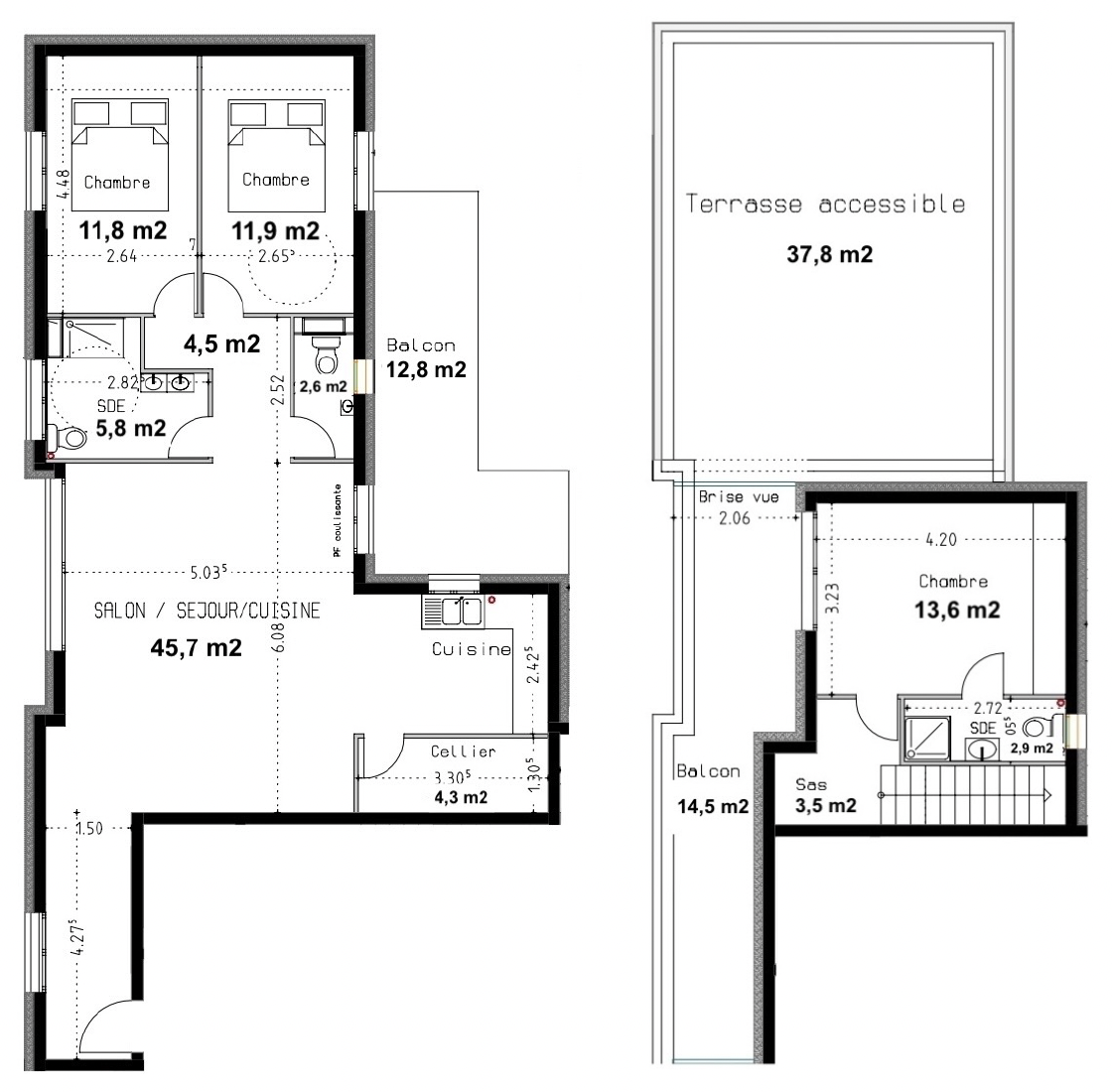 Surfaces 3 pièces (lots 1, 4)
