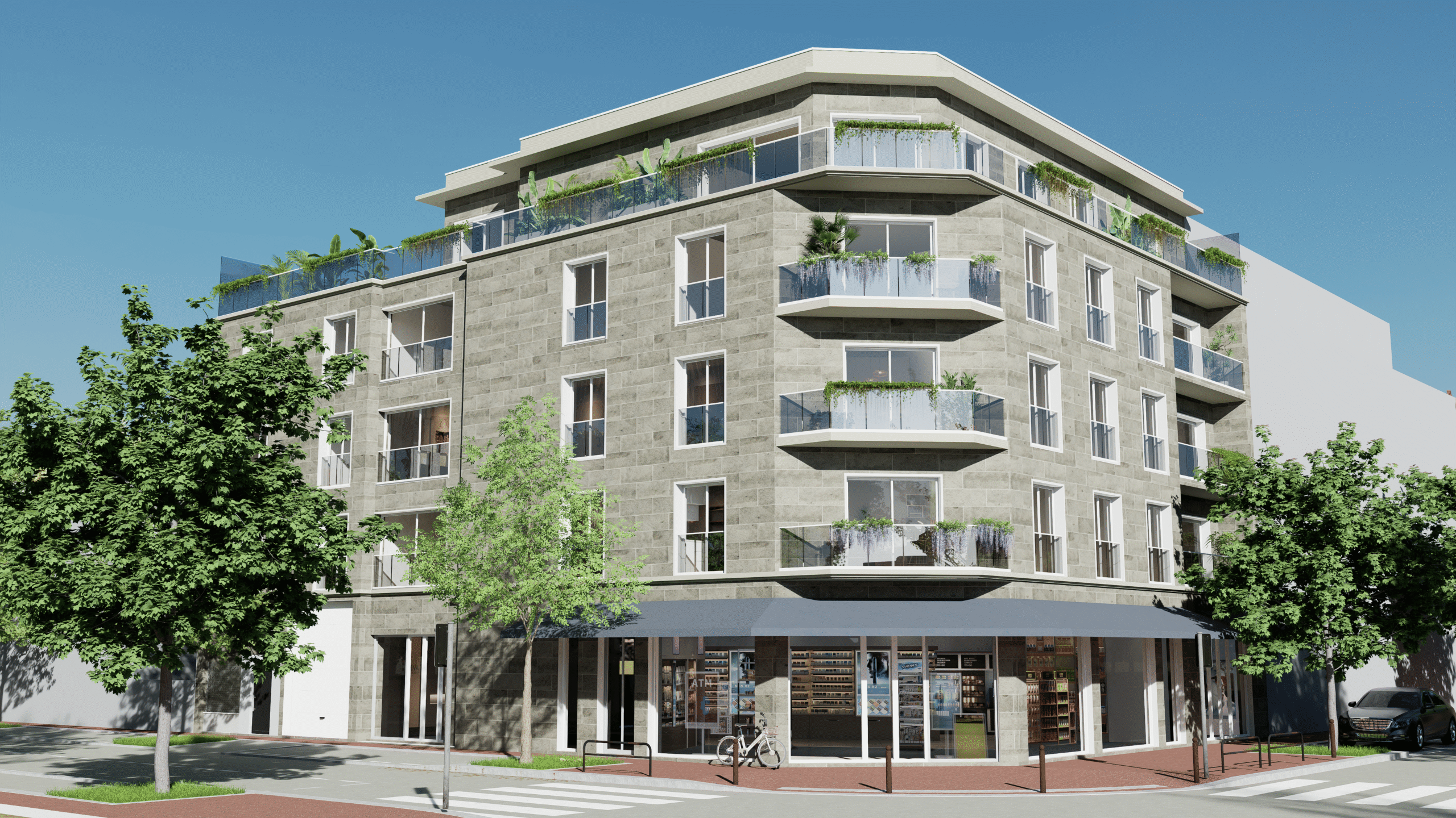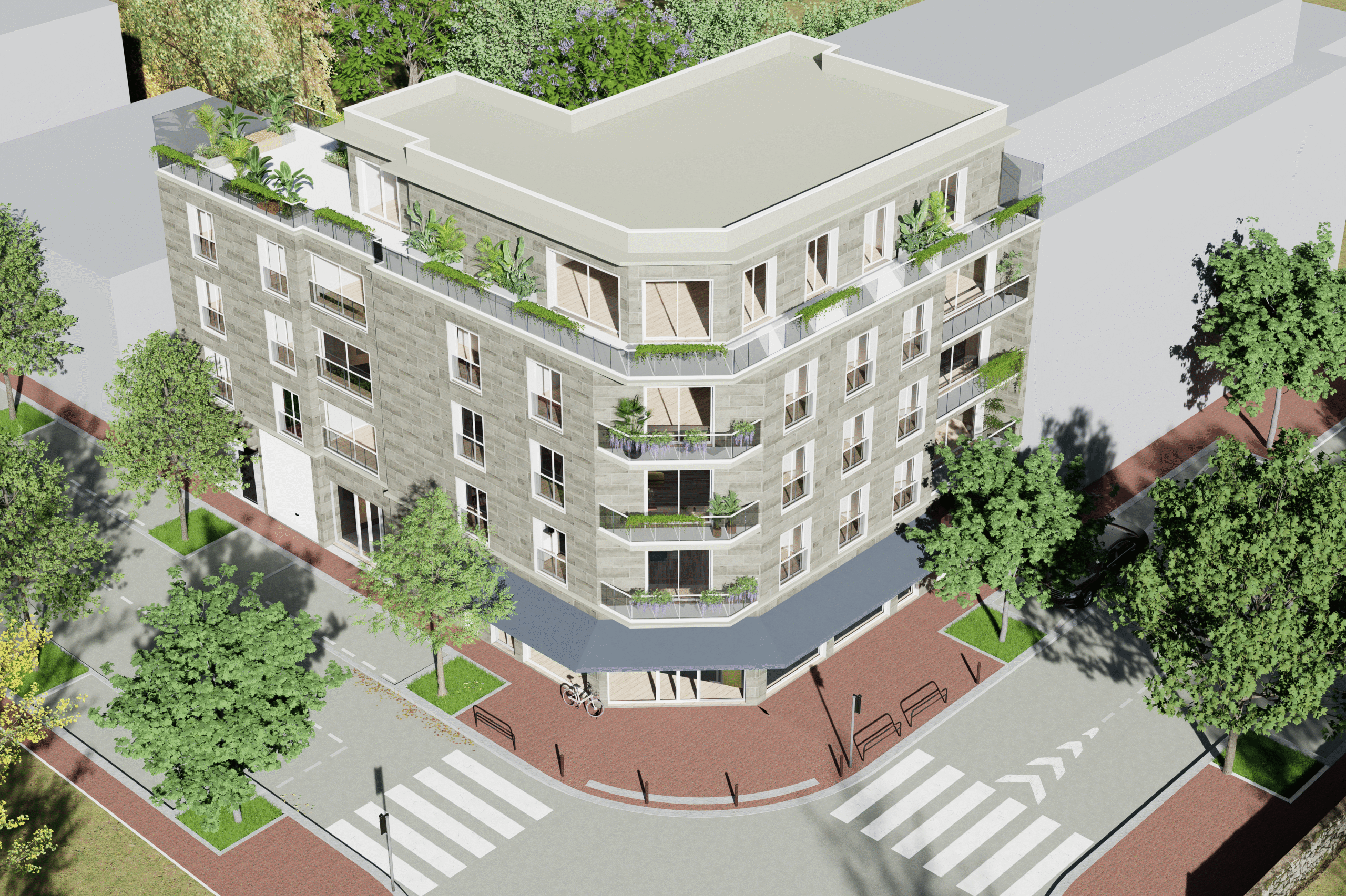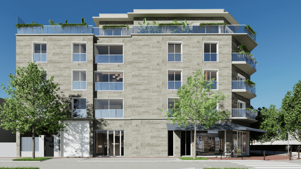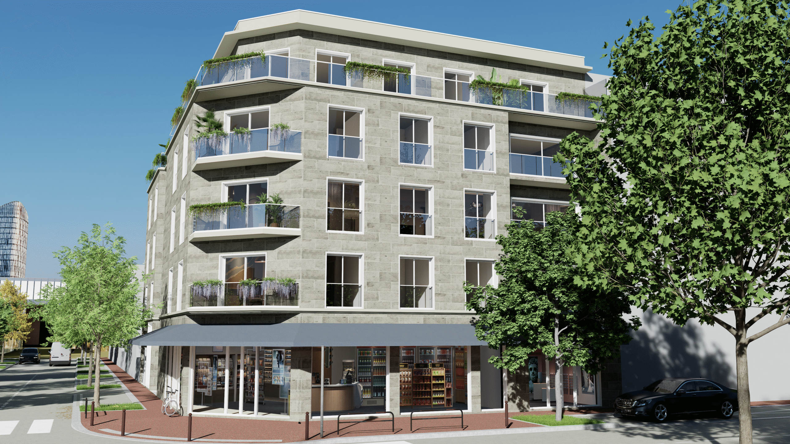 VILA QUANTICA vous propose une résidence de standing sur 6 niveaux, composée de 10 appartements et de 3 locaux commerciaux, avec parkings en sous-sol.
