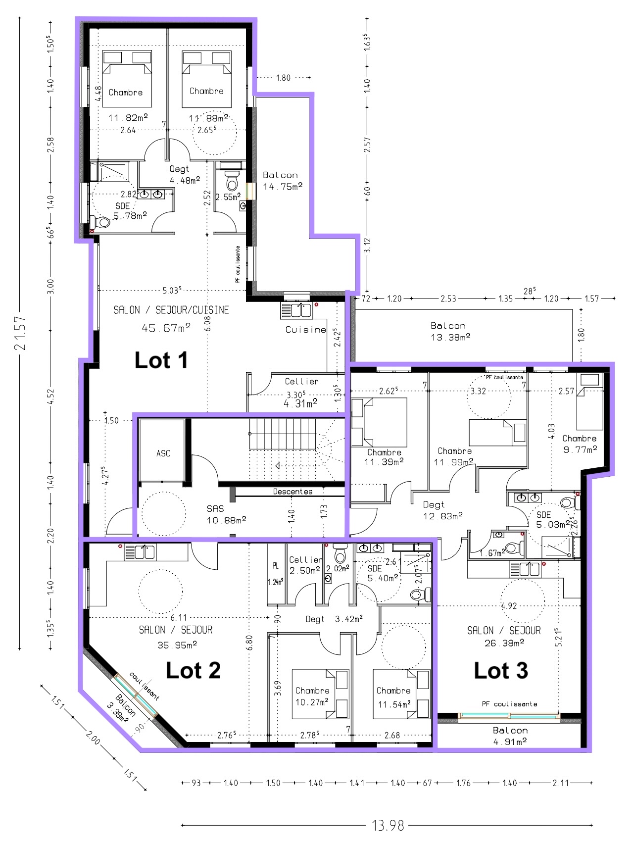 Surfaces 3 pièces (lots 2, 5, 8)